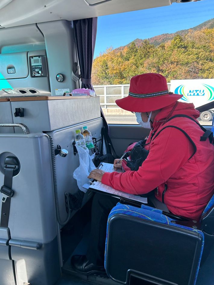 ツアーの日誌もバスの中で書くのも重要な仕事。