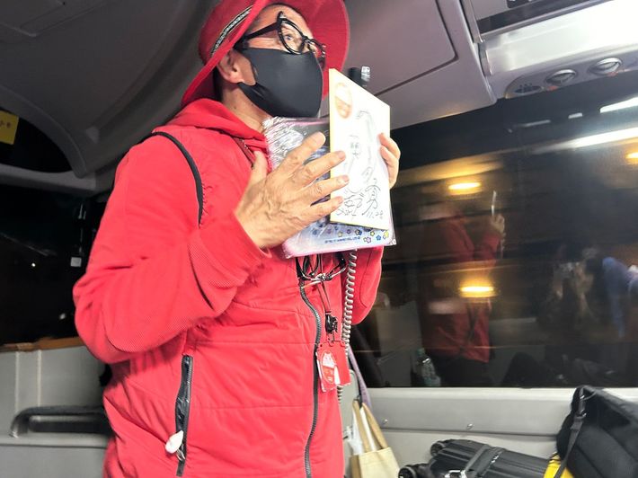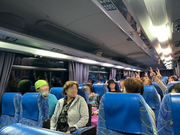 ジャンケンあごで、バスの中は大盛り上がり。
