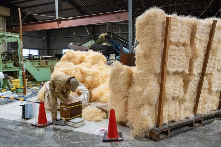製造されたもくめんは、手作業で丁寧にまとめられていく