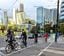 オーストラリア・メルボルンの市街地。自転車専用レーンが整備され、ヘルメット率は極めて高い
