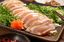 左は、中心温度50℃で40分間しっかり加熱した鶏肉。殺菌最低温度でも、赤みはあっても全体的には白く、透明感のあるピンクにはなりません。グラデーションもなし。右は、わざと高温で短時間だけゆでた状態で、透明感があり、火が通っていないことがわかります。