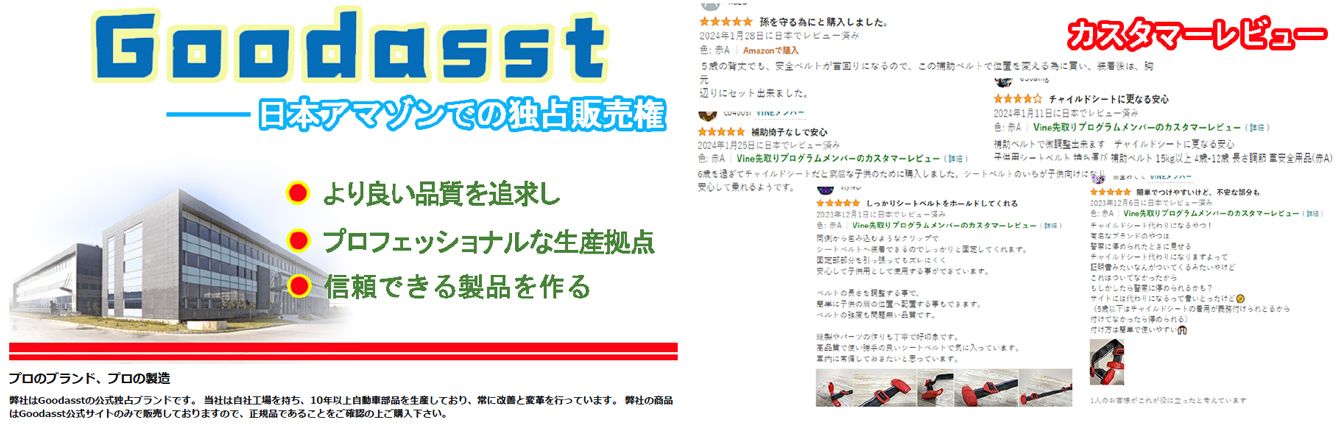 Goodasstが販売している補助ベルトの商品説明。こちらも「ECE R44/04に合格」とあるが…