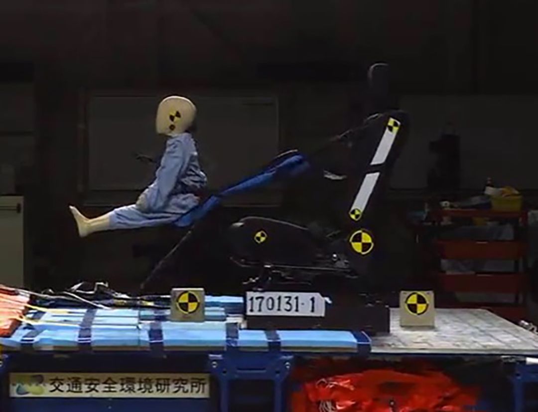 未認証チャイルドシートでは、事故の衝撃を受けると固定金具や布が破れて子どもを拘束することができない(