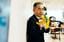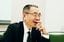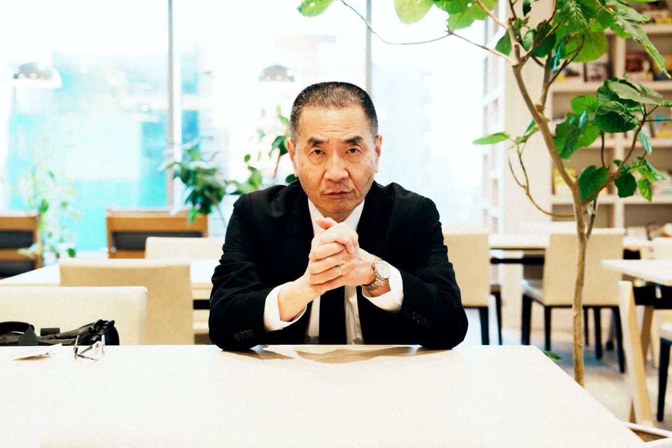 インタビューに答える緒方健二さん。笑顔の写真は珍しい