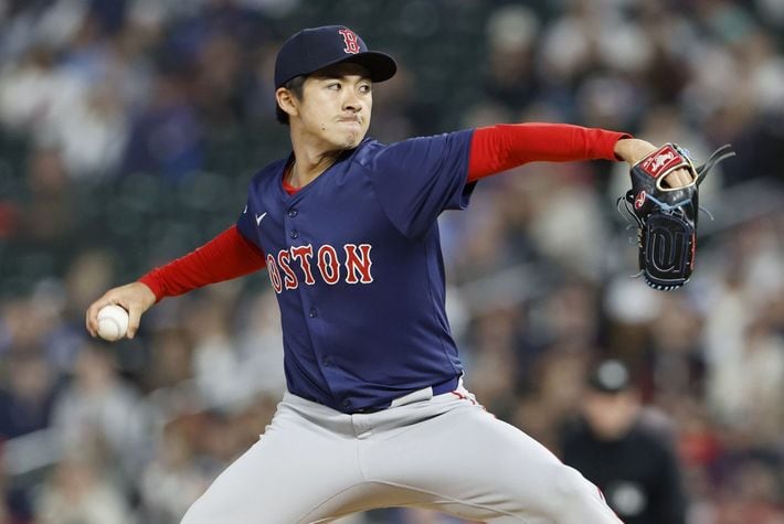 ツインズ戦の7回途中から登板し、2回2安打1失点だったレッドソックス・上沢=2024年5月3日、ミネアポリス