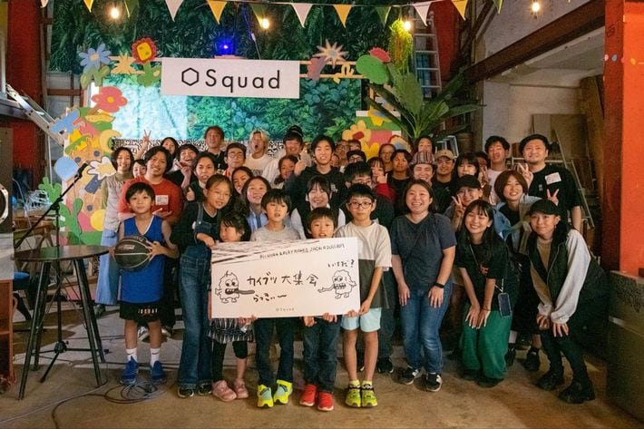 カイブツプロジェクト、参加者の子供たちと一緒に記念撮影。