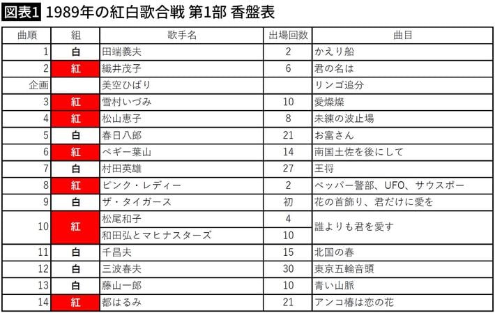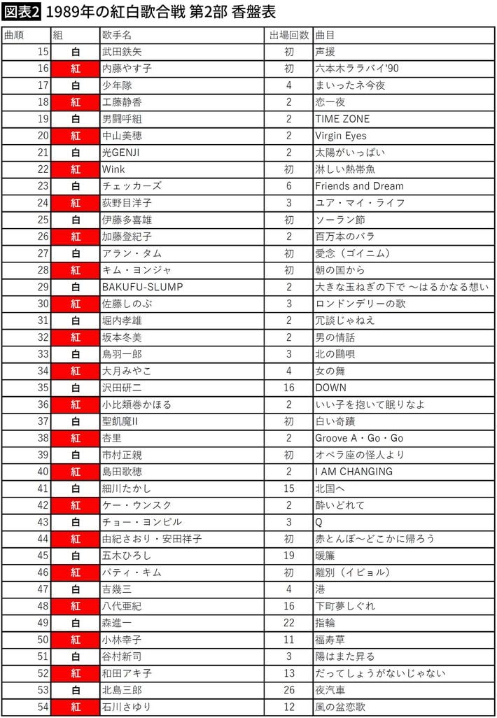 NHKホームページ「紅白歌合戦曲順リスト」をもとに編集部作成