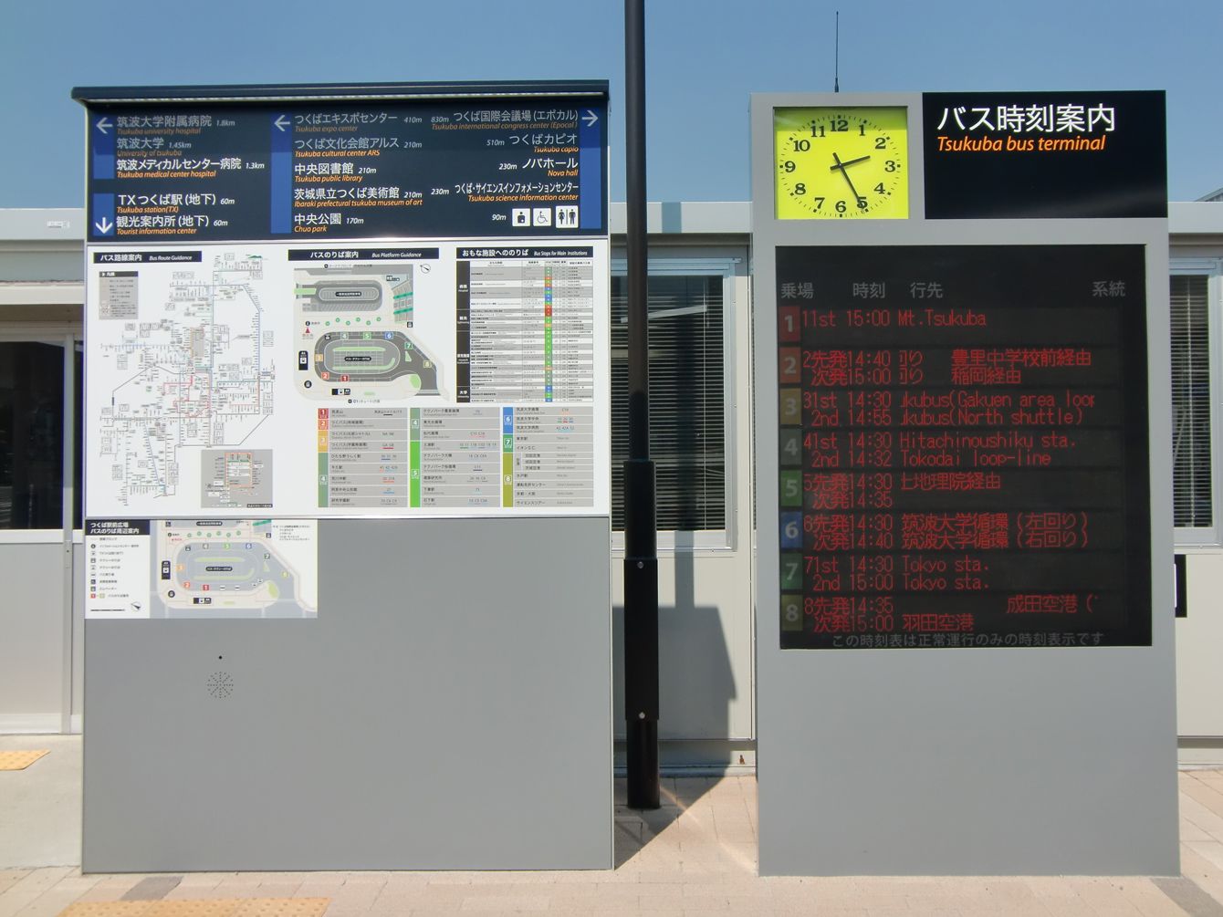 6番のりばの欄に「筑波大学循環」が表示されているつくばセンターバスターミナルの発車標。日中でも10分間隔でキャンパスに乗り入れる。(2011年)(写真=オンちゃん/CC-BY-SA-3.0/