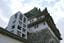 閉鎖された名古屋城天守。左は外付けのエレベーター=名古屋市
