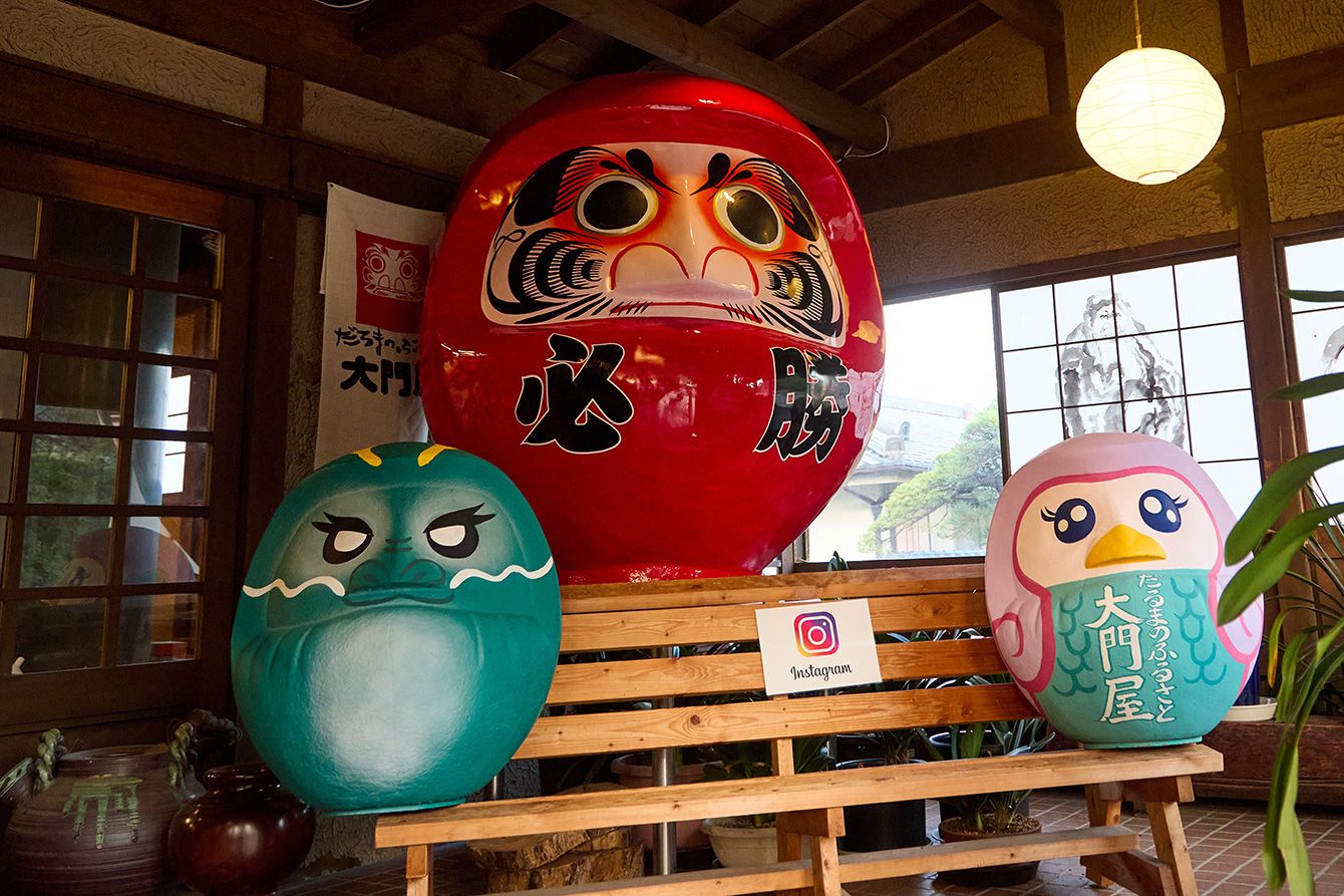 広々とした店内。昔ながらの赤い高崎だるまのほか、色鮮やかなだるまが並んでいた