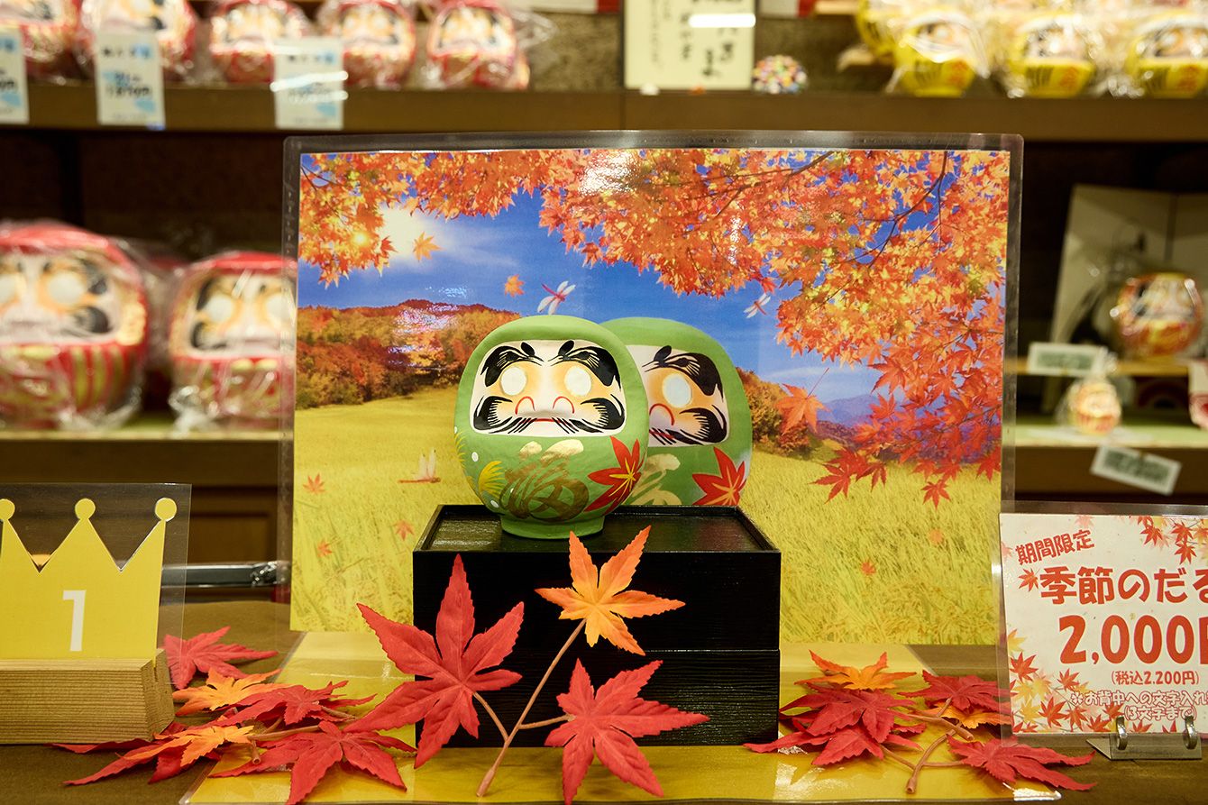 広々とした店内。昔ながらの赤い高崎だるまのほか、色鮮やかなだるまが並んでいた