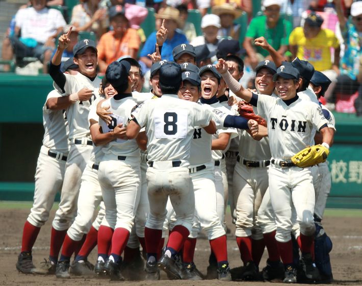 光星学院を破り、春夏連覇を達成した大阪桐蔭ナイン=2012年8月23日、甲子園