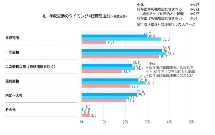 アンケートでは、年収交渉のタイミングを「一次面接」と答えた人が最も多かった