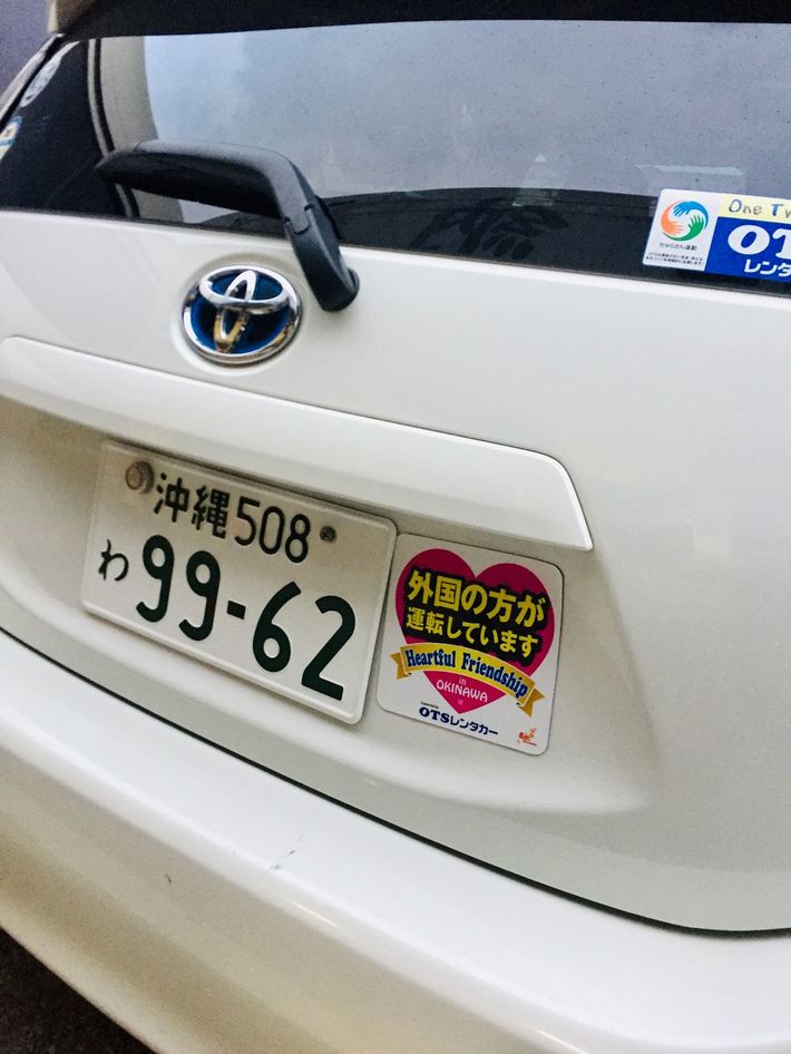 「外国の方が運転しています」ステッカーが貼られたレンタカー