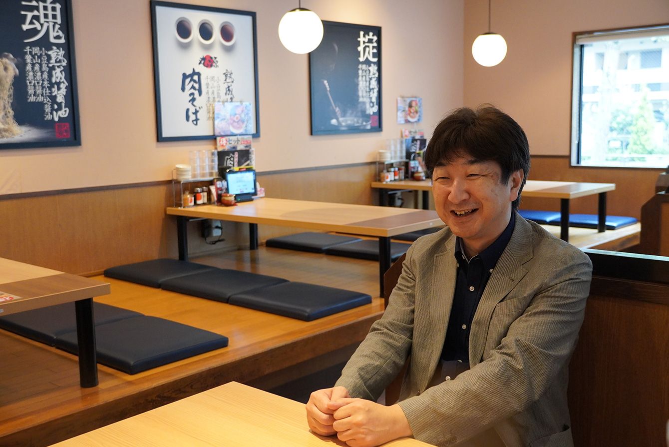 (写真1)肉そばの特徴と味変(下の黒部分)を提案したメニュー。