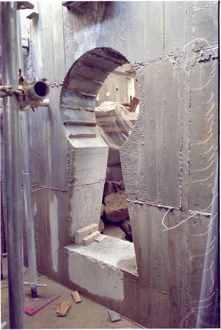 掘削した大量の土砂がつめられたガラ袋。建設開始当初の様子。