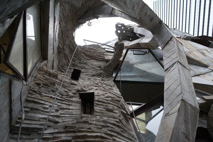 さまざまな表情を持つ蟻鱒鳶ル。こちらの外壁は樹木を思わせるつくりになっている。