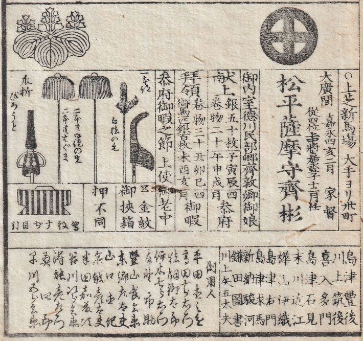 島津斉彬が松平を名乗っていた武鑑 出典=須原屋茂兵衛版「新板改正嘉永武鑑」嘉永七(1854)年版