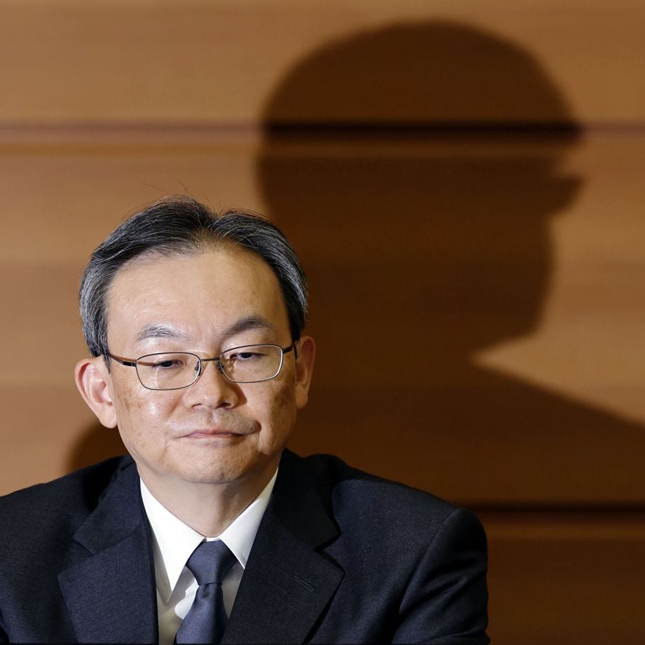 記者会見で厳しい表情を見せる三菱UFJ銀行の半沢淳一頭取=2024年12月16日午後、東京都千代田区