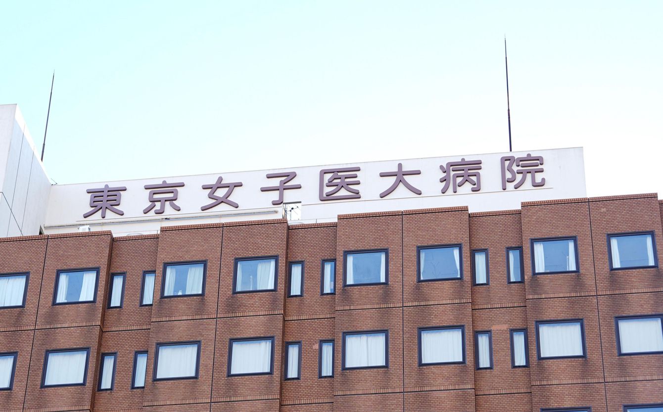 東京女子医大病院の看板=2025年1月13日午後、東京都新宿区