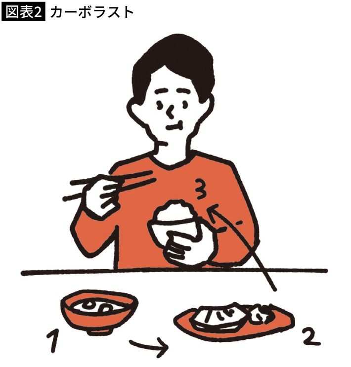 炭水化物を最後に食べると血糖値が抑えられる。[出所=『