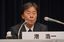 長時間におよぶ記者からの追及に、思わず苦渋の表情を浮かべるフジテレビの港浩一社長(2025年1月27日)