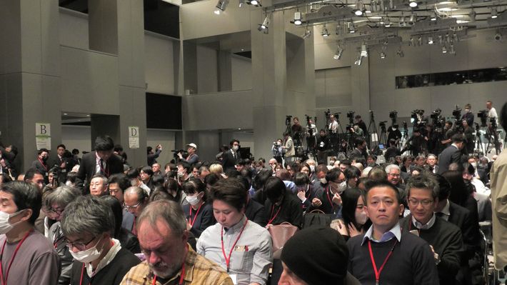フジテレビの会見に集まった記者たち(2025年1月27日)