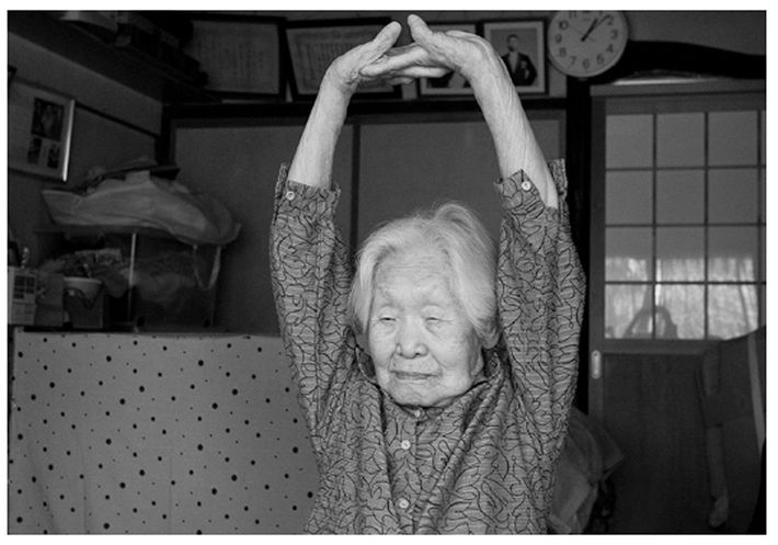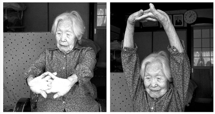 【図版12】11の流れで両腕を上げる。[出所=『108歳の現役理容師おばあちゃん』(宝島社)/撮影=栗栖誠紀]