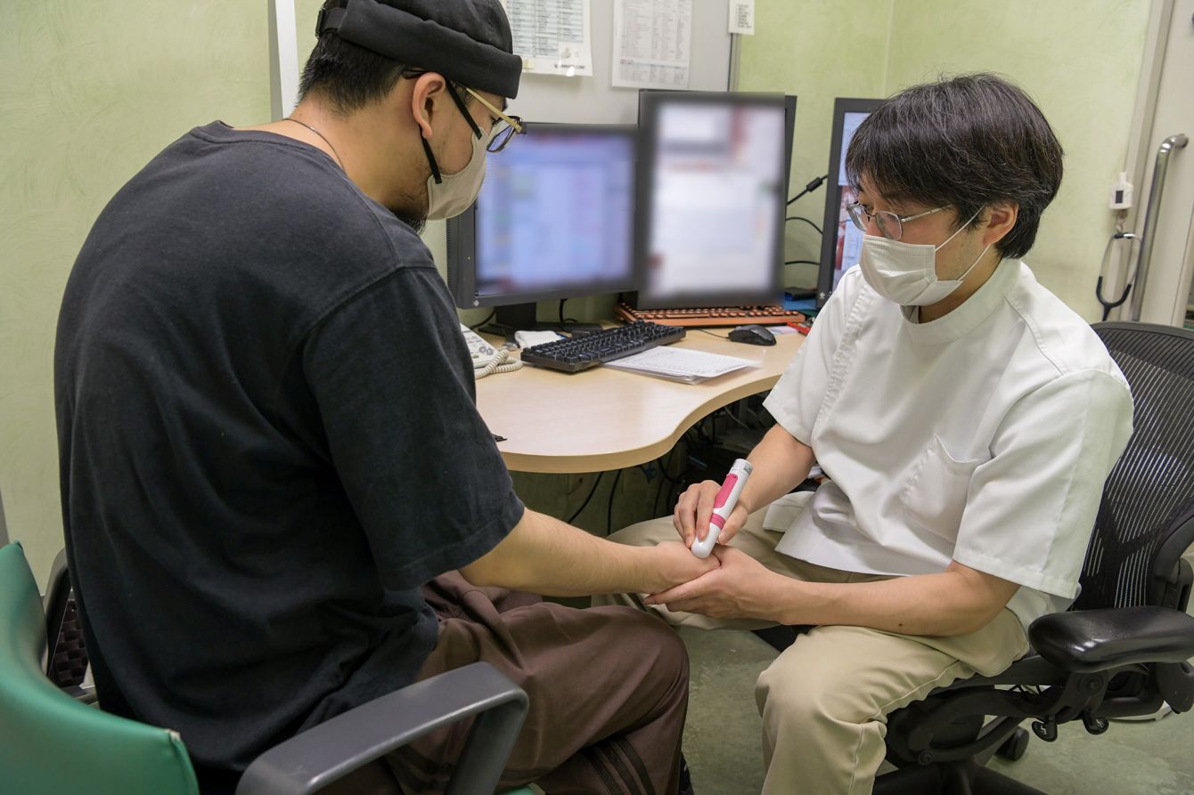 片山秋介さんの診察を行う、平畑光一医師(ヒラハタクリニック)