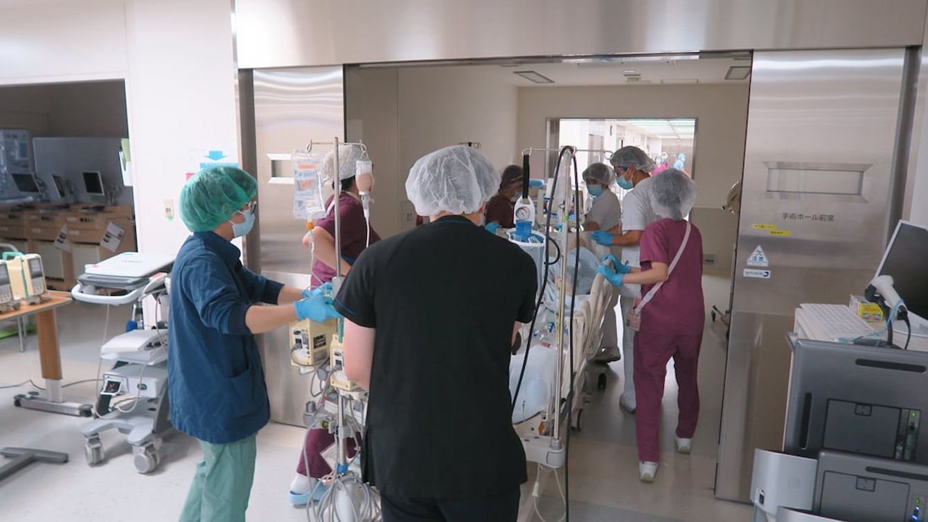 ICUから手術室へ運ばれる息子
