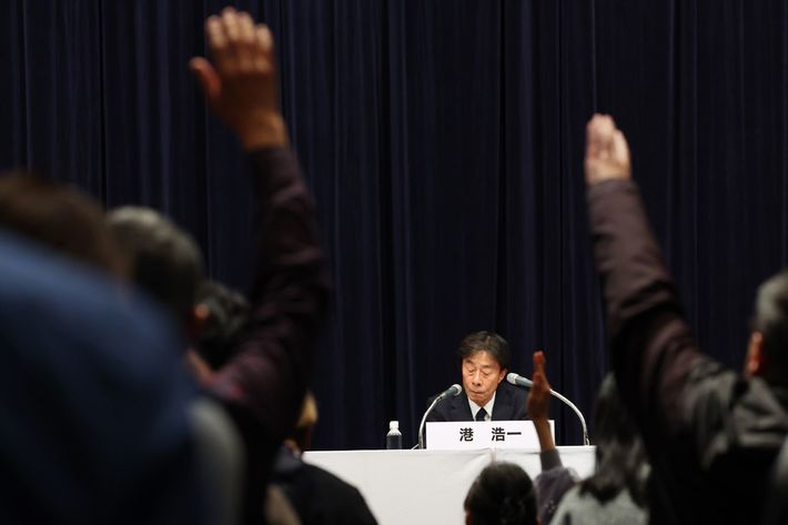 1月27日、フジテレビの「やり直し会見」に参加した記者たち。会見は10時間半に及ぶ異例の長丁場となった