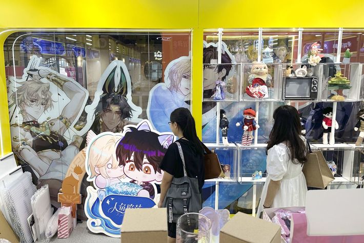 商業施設内でBL関連作品のグッズなどを扱う店舗=2024年8月31日、北京