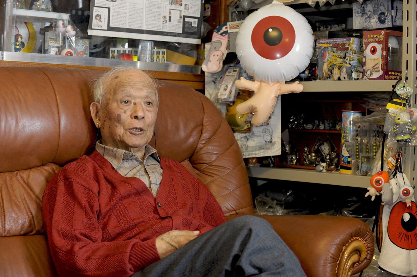 水木しげるさん=2013年2月28日、東京都調布市の水木プロダクション