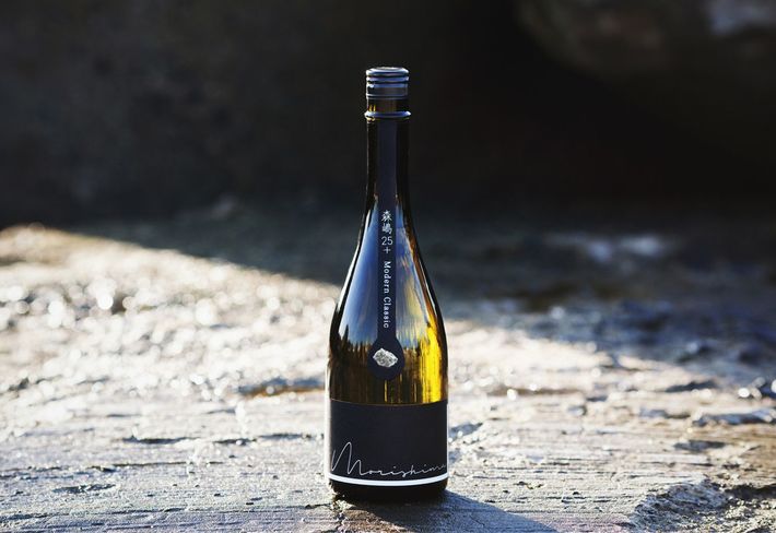 森嶋25+SILVER(純米大吟醸[瓶燗火入])。2023年12月~24年2月まで、日本航空(JAL)国際線ファーストクラスで提供された。