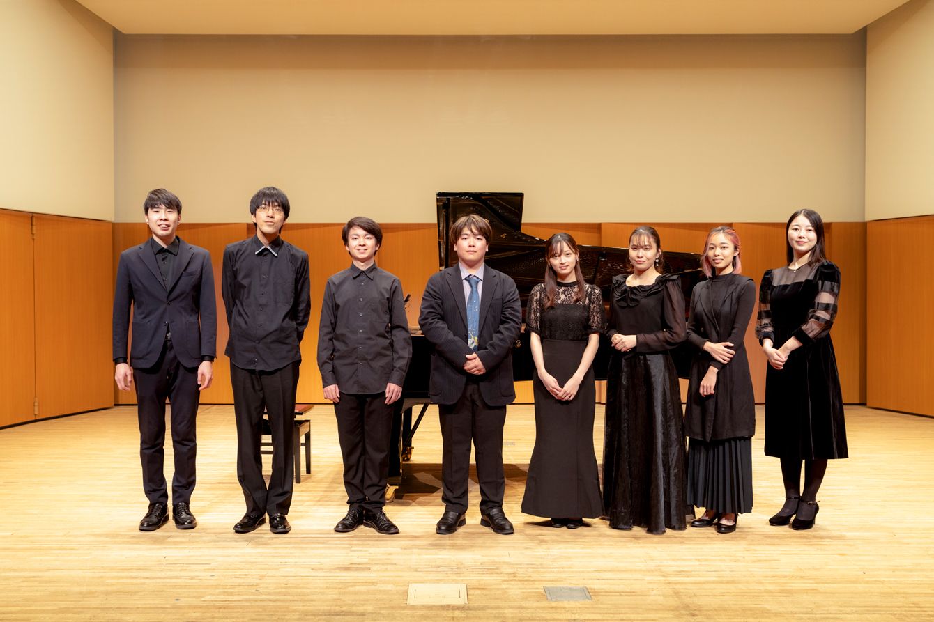 作曲家として活動する内田さん(中央)。2023年12月、“個展”に出演した演奏家の仲間たちと