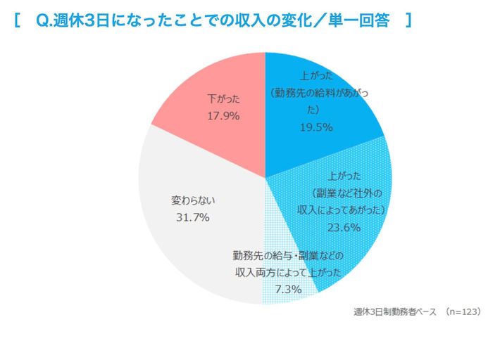 週休3日で「収入が上がった」と回答した人は全体の50.4%に上っている