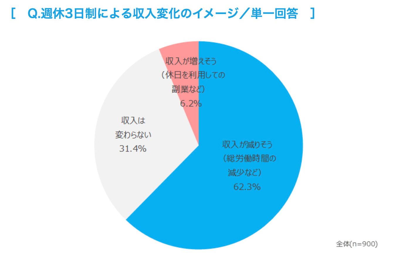 週休3日で「収入が上がった」と回答した人は全体の50.4%に上っている