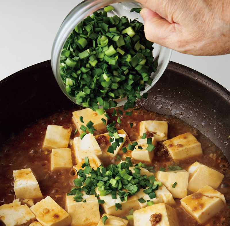 ステップ1で豆腐を中まであたためておけば、全体を煮る時間を短縮できます。あたためながら豆腐の水きりもできるので一石二鳥です。[出所=『