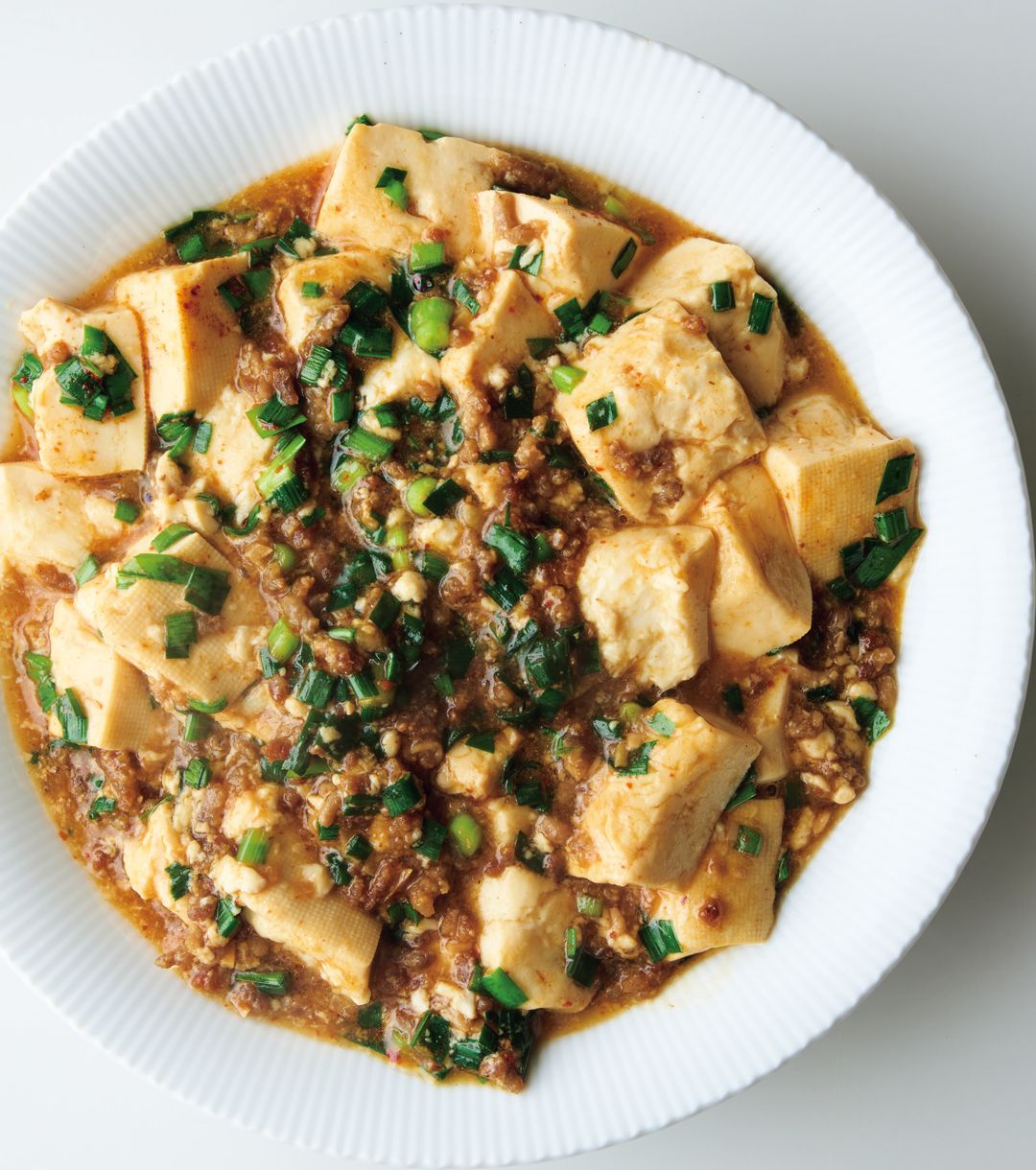 ステップ1で豆腐を中まであたためておけば、全体を煮る時間を短縮できます。あたためながら豆腐の水きりもできるので一石二鳥です。[出所=『