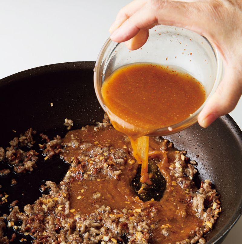 ステップ1で豆腐を中まであたためておけば、全体を煮る時間を短縮できます。あたためながら豆腐の水きりもできるので一石二鳥です。[出所=『
