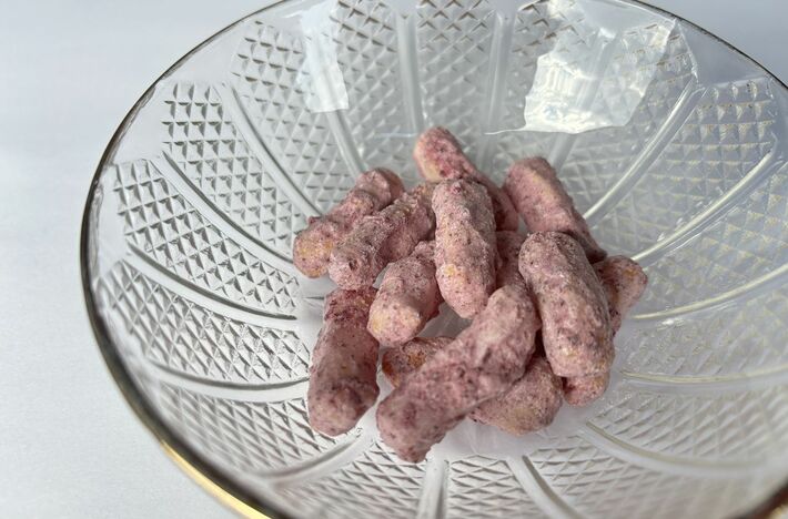 口に入れると甘く、ほろっと溶けるような「ブルーベリーあられ」