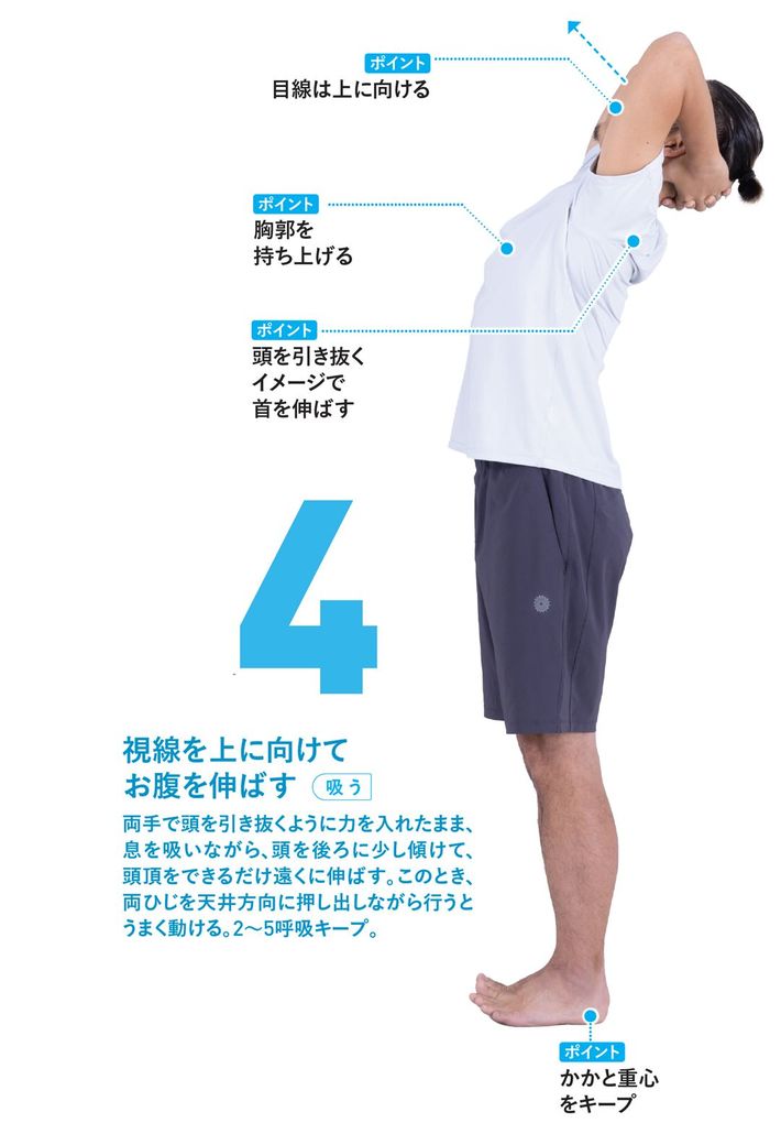 逆腹筋のやり方 ④視線を上に向けてお腹を伸ばす 出典=『
