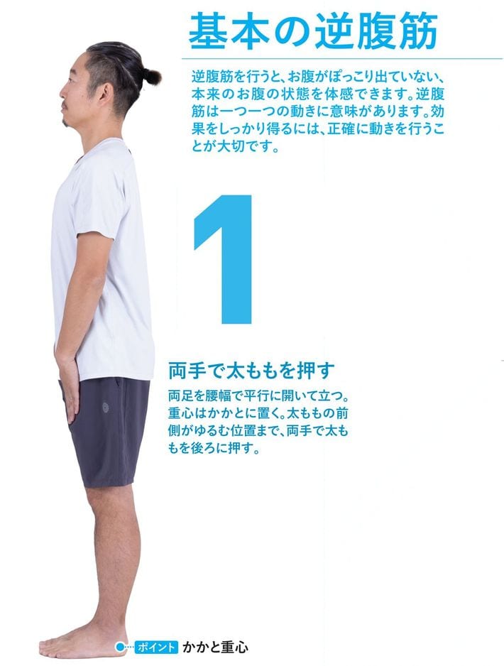 逆腹筋のやり方 ①両手で太ももを押す 出典=『