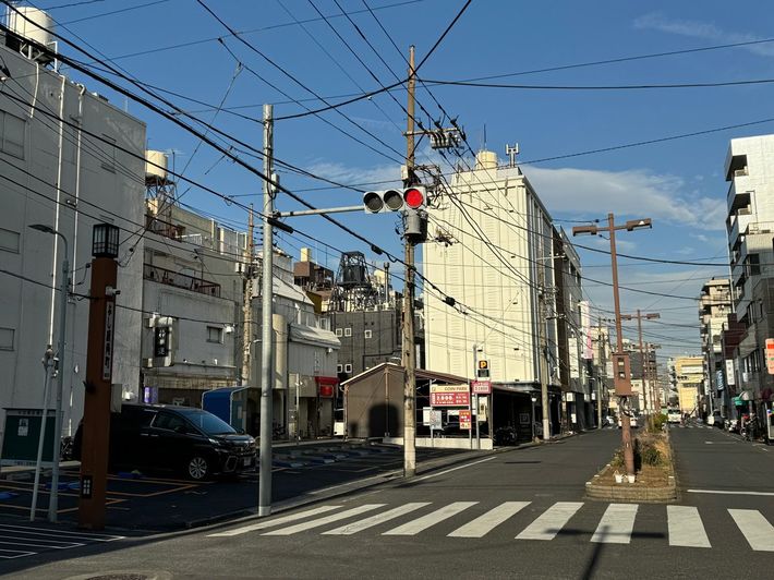 いまも広い通りが真っ直ぐ伸びる「仲の町」。