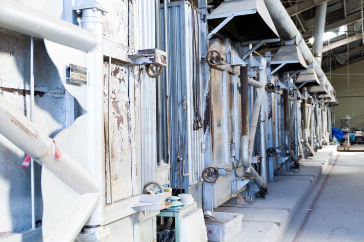 工場には、一度に1000個の器が焼ける大型窯が10機ずらりと並ぶ