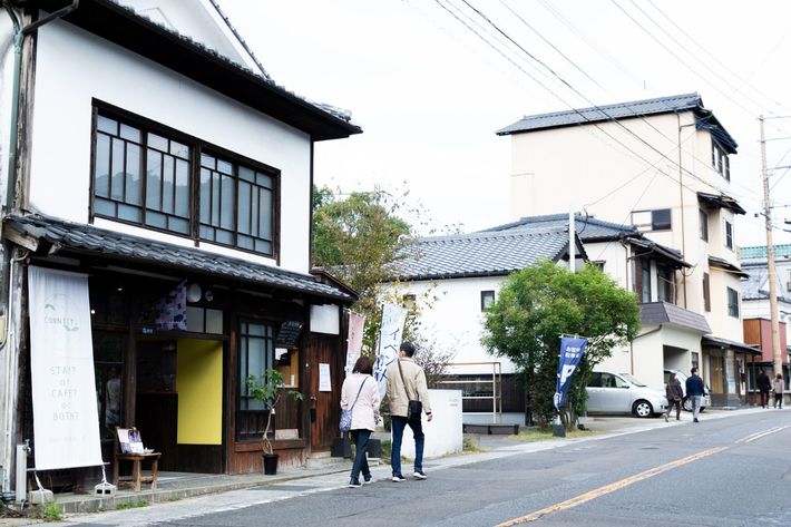 2023年に上有田駅近くにオープンした宿泊施設を併設したカフェ「CONNECT.」(左手前)。親峰武堅の作品を直売している