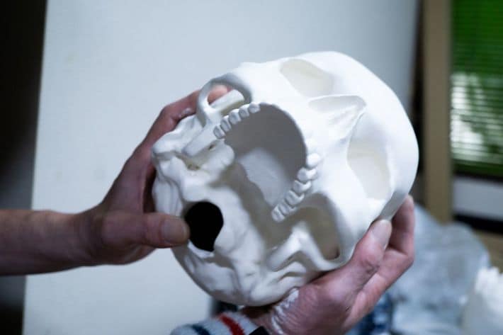 顎関節をボルトで固定している。細やかな装飾も評価された