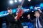 2月20日、米ワシントン近郊で開かれた保守政治行動会議(CPAC)総会でアルゼンチンのミレイ大統領(右)から渡されたチェーンソーを掲げるイーロン・マスク氏(ロイター=共同)