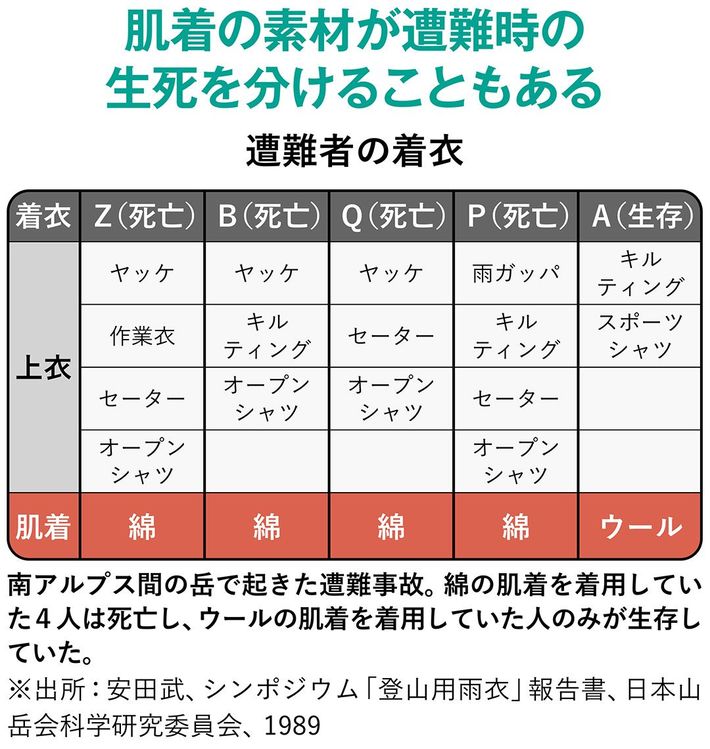 遭難した5人のうち、生き残った1人だけが違った…冬場の肌着選びで専門家が「繊維の種類」に注目する理由