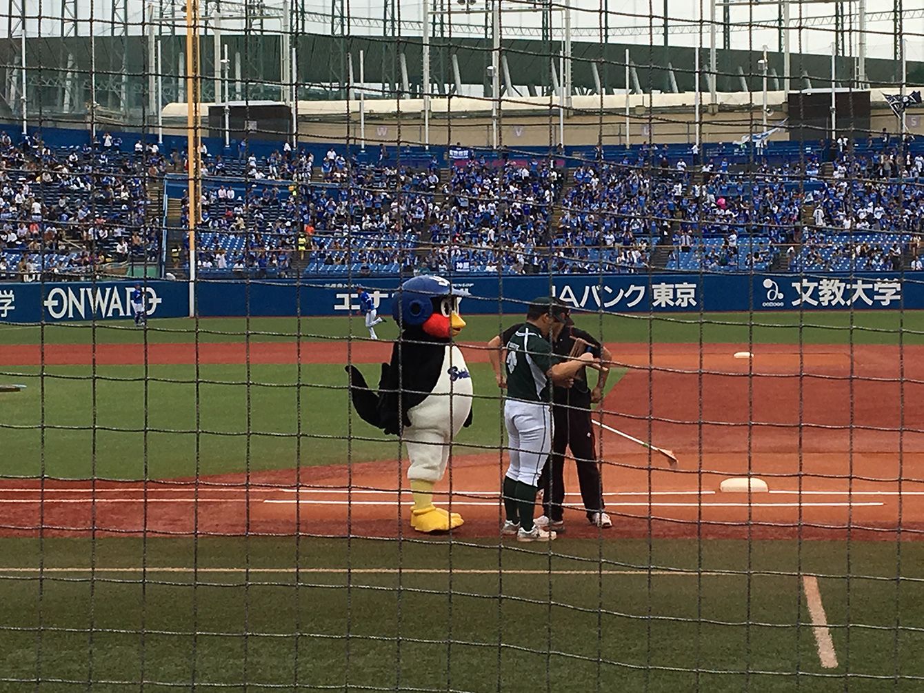 つば九郎曰く、ドアラは「びじねすぱーとなー」。中日戦で恒例だった「パン食い」競争の様子。